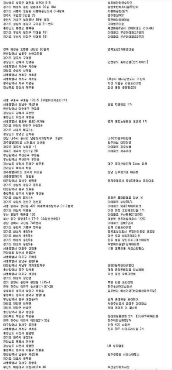 해킹된 아파트 리스트